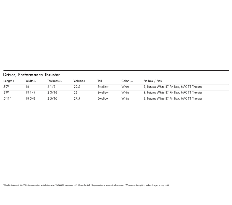 | Driver | 5'9'' - 25L | | | | KT